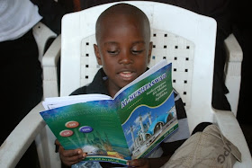 Mtoto  wa jijini Dar es Salaam, Arafat Msham akiduusu kitabu hicho