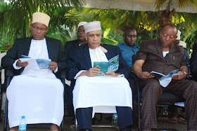 Membe, Dk. Salim na Sumaye wakisoma kitabu cha Sheikh Mkuu Shaaban Issa Simba